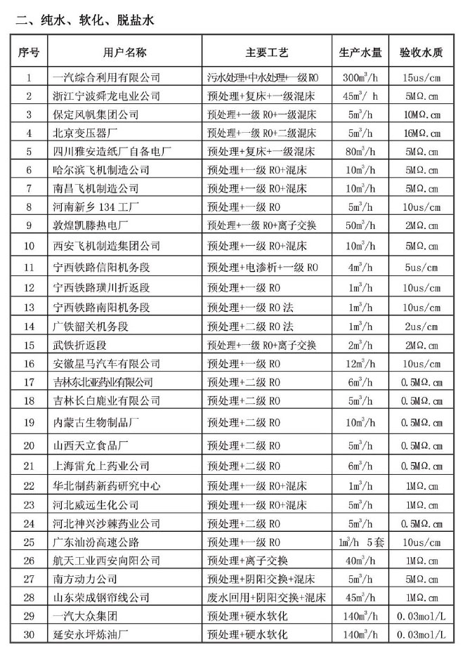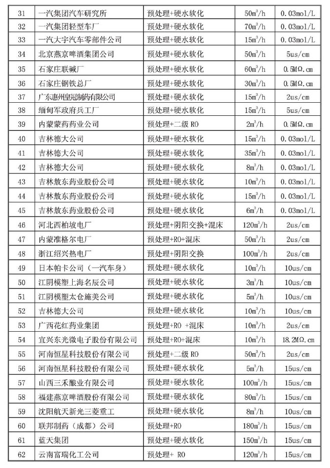 4 | 寧夏開特力鎂業有限公司 | 2×20T/H | 1套 | 預處理+反滲透+混床 | |