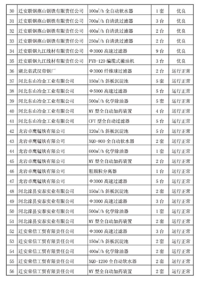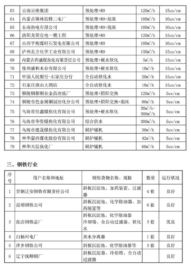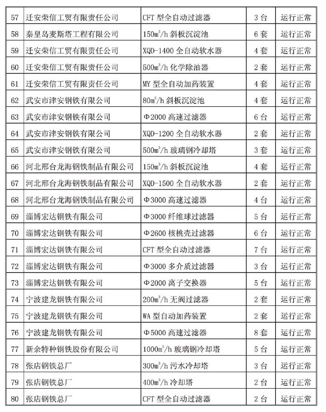 2 | 佳木斯中恒熱電有限公司 | 50T/H | 10套 | 錳砂過濾器 | |